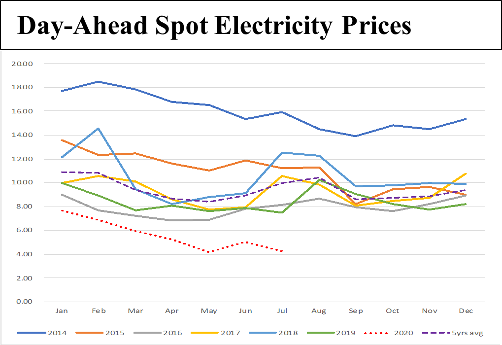 The low prices are due in part to a spate of temporary and permanent closures of oil-fired power stations, most recently in Wakayama and Yamaguchi.