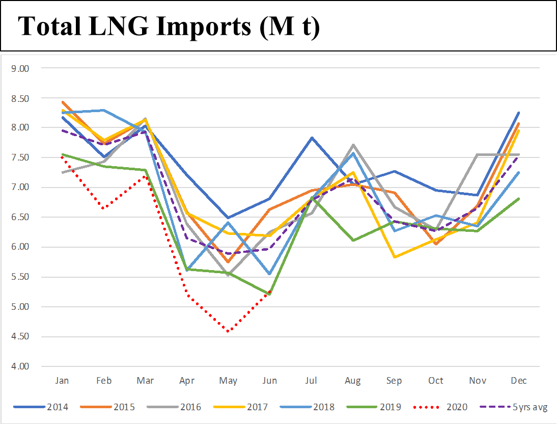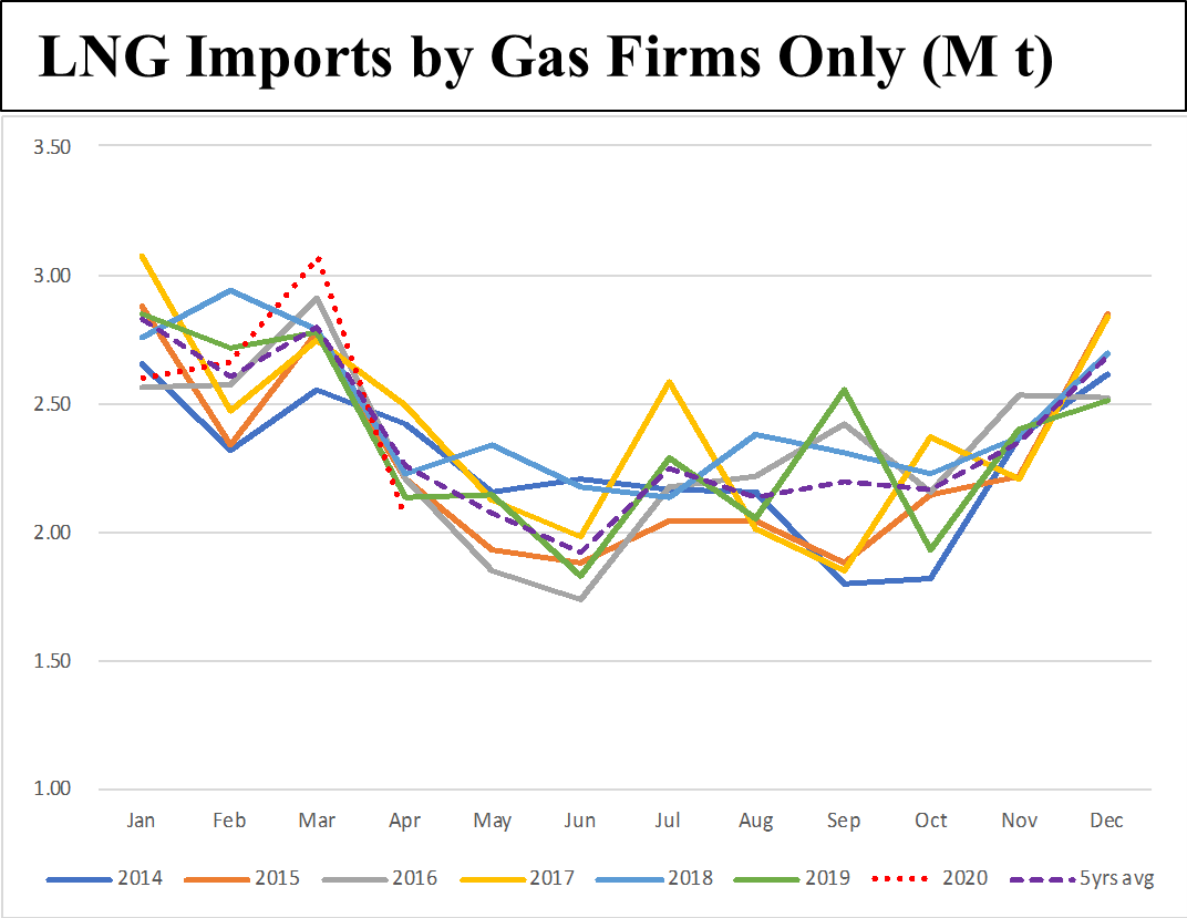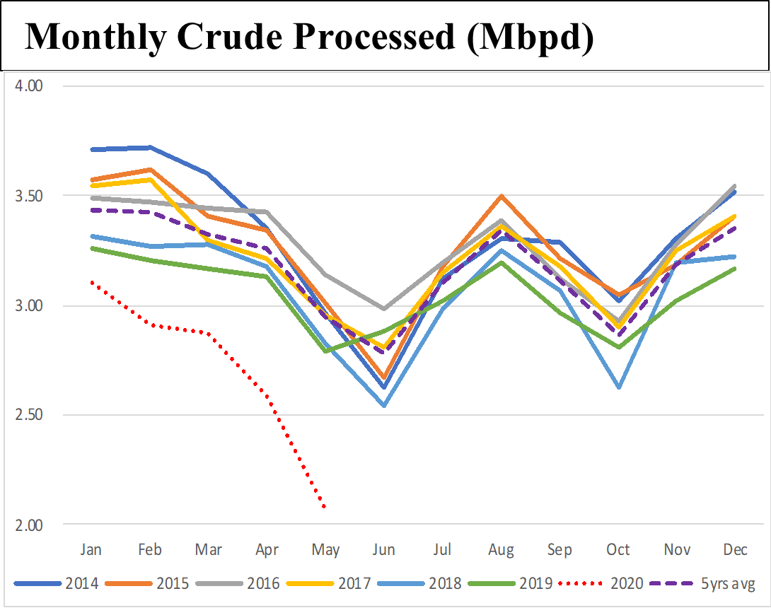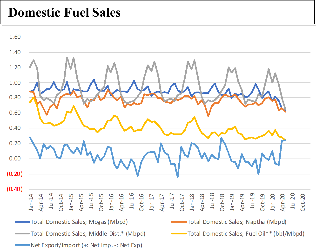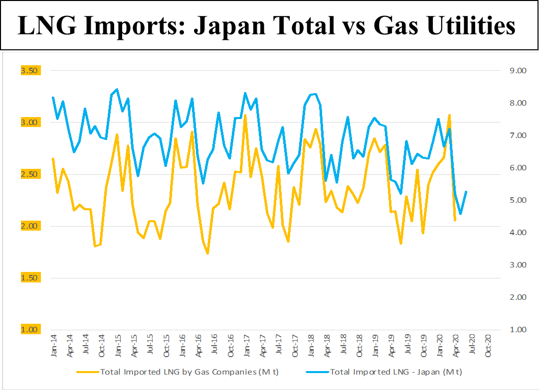 A further problem for Japan’s refineries is the dichotomy in gasoline sales versus fuel used by airlines and shippers. In early June, gasoline demand bounced back to around 90% of last year’s level, but domestic flights operated at less than 80% of schedule, while international flights were few. It’s even worse for shipping fuel sales: All of Japan’s cruise liners are grounded at least until mid-September.
