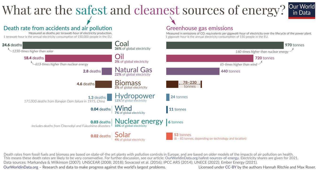 Small modular reactors (SMRs), touted as next-generation nuclear technology, also occupy significantly smaller land footprints than extensive solar or wind farms, minimizing ecological disruptions and land acquisition issues. Source: Our World in Data (2020)